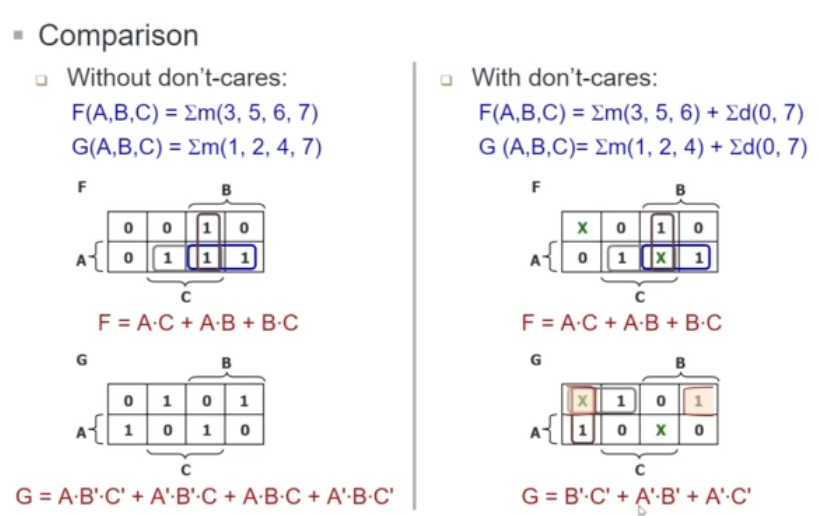 You may treat “don’t cares” as 1 or 0s in K-Maps